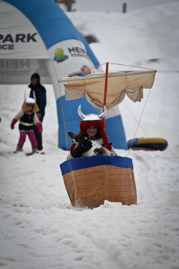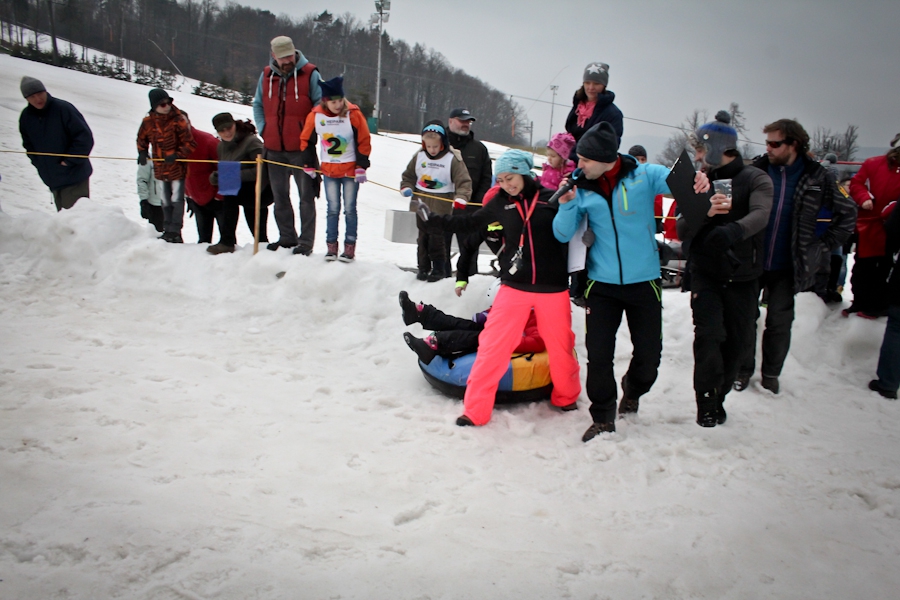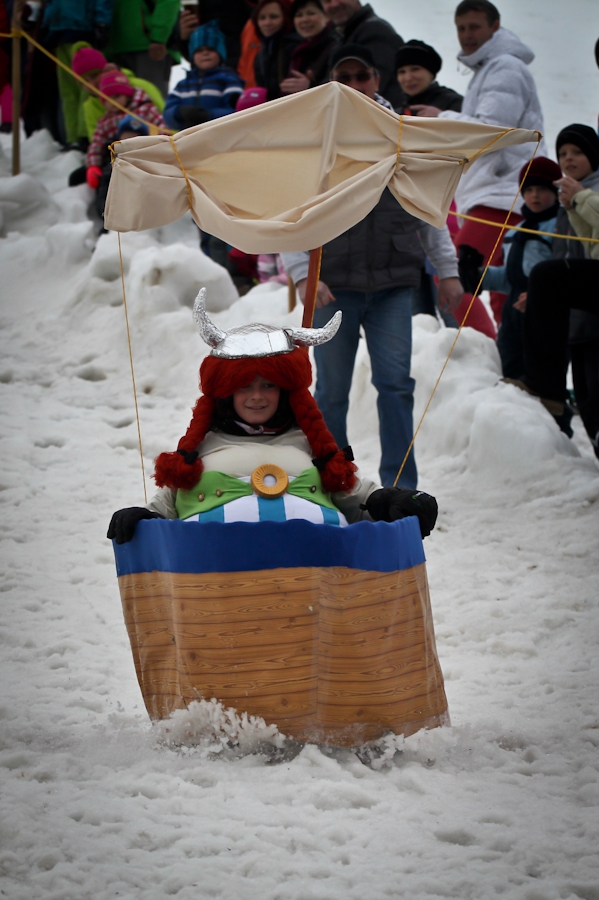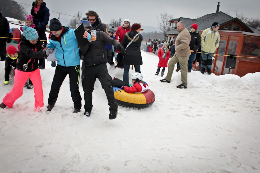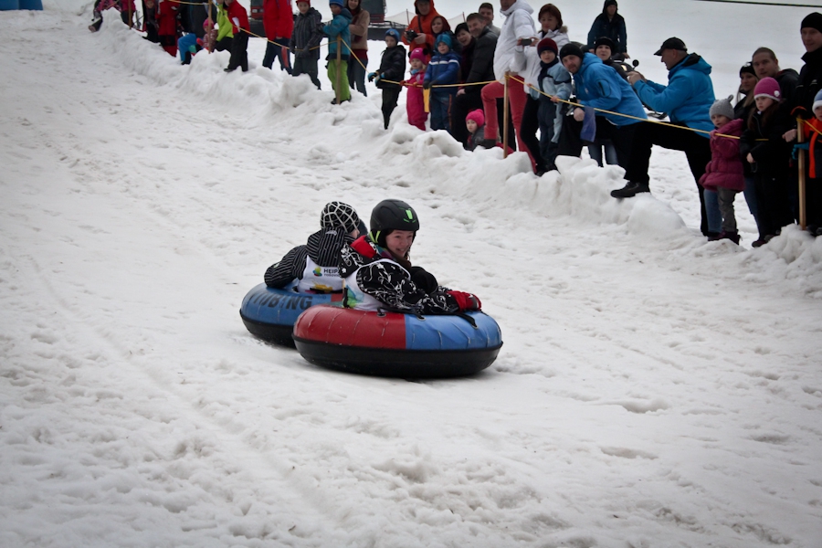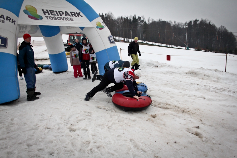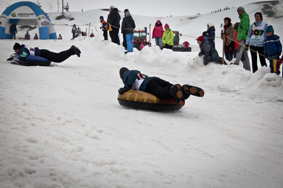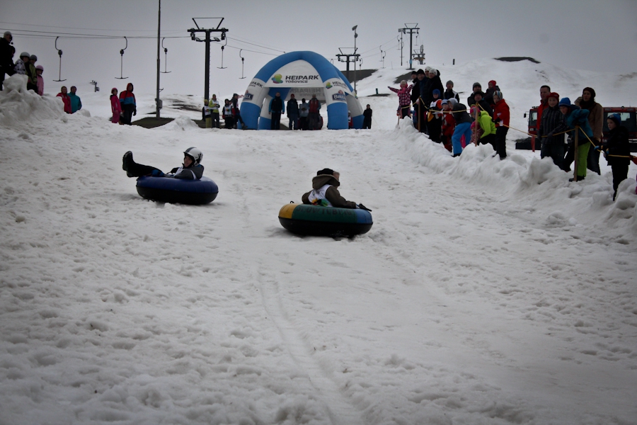 Závody ve sjezdu na čemkoliv z kopce a závody na tubingových důších jsou každoročně symbolem končící zimní sezóny...