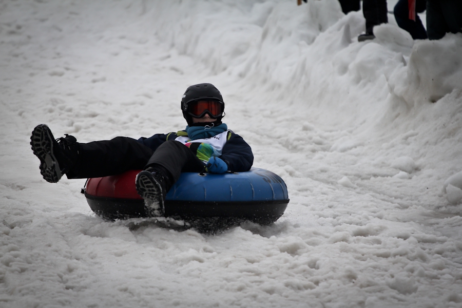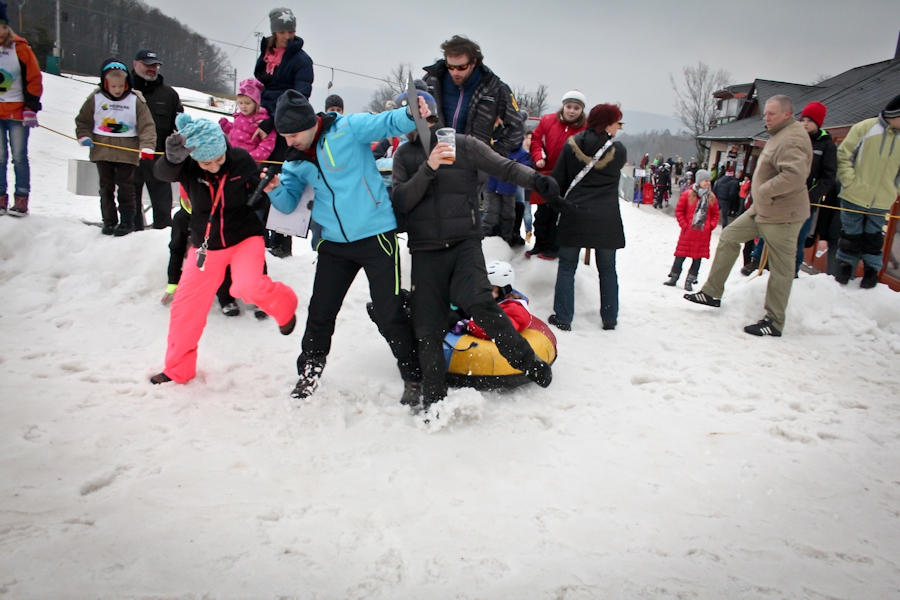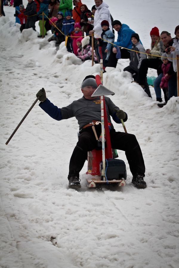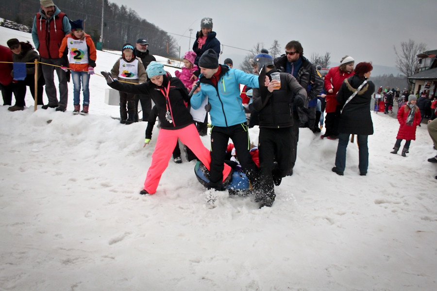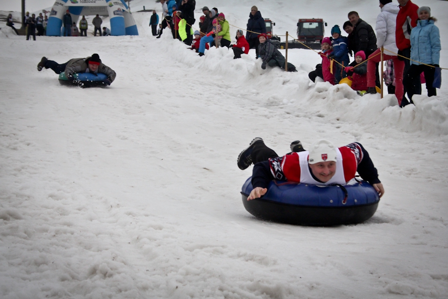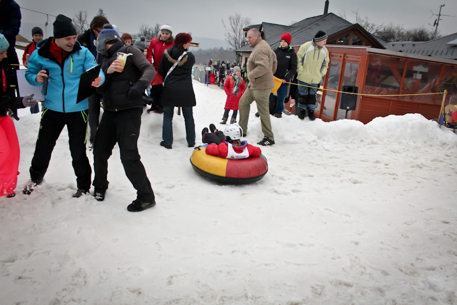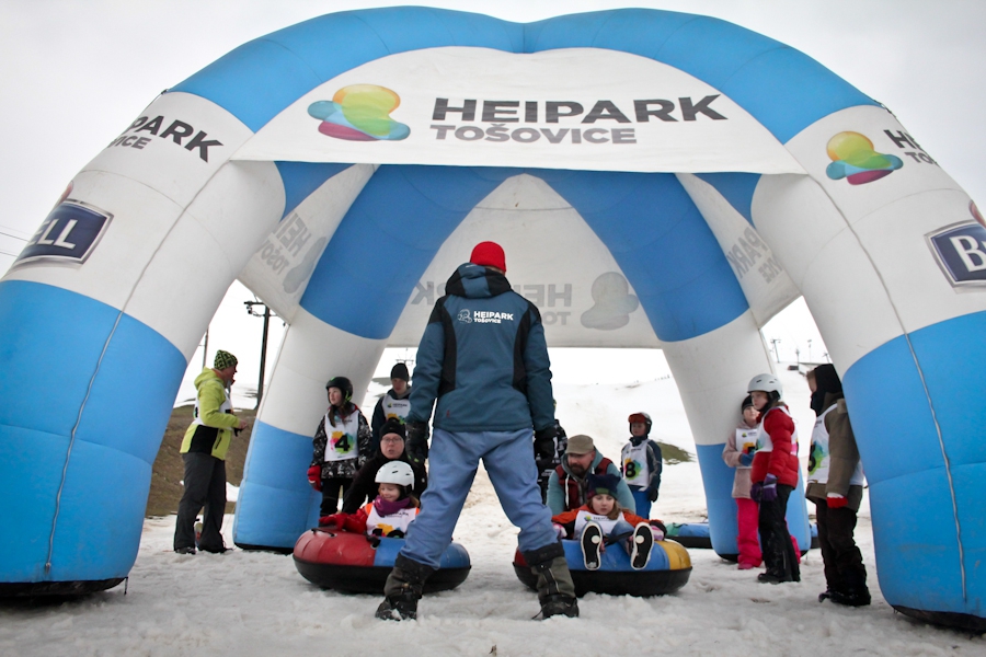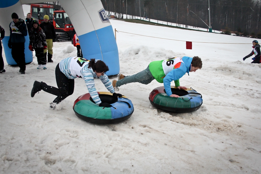 Závody ve sjezdu na čemkoliv z kopce a závody na tubingových důších jsou každoročně symbolem končící zimní sezóny...