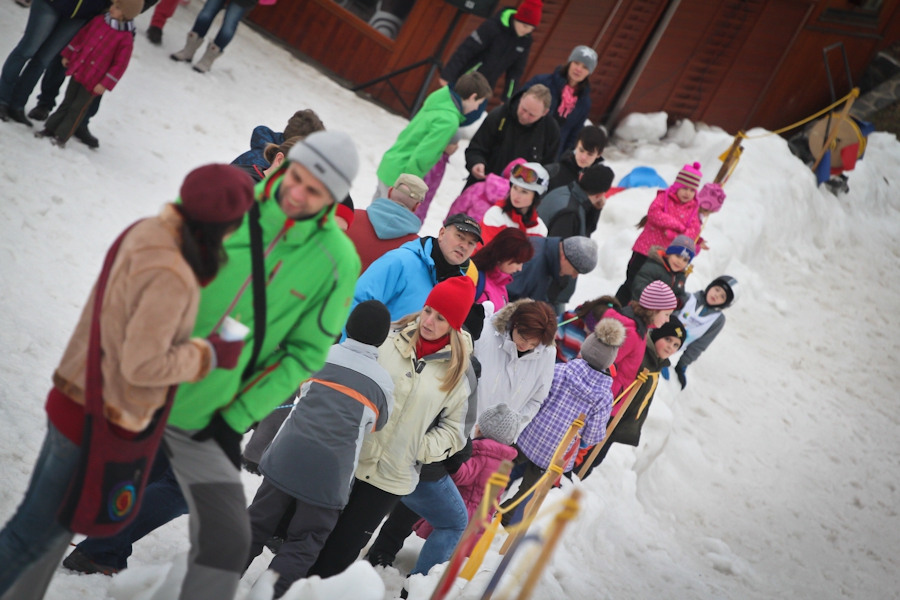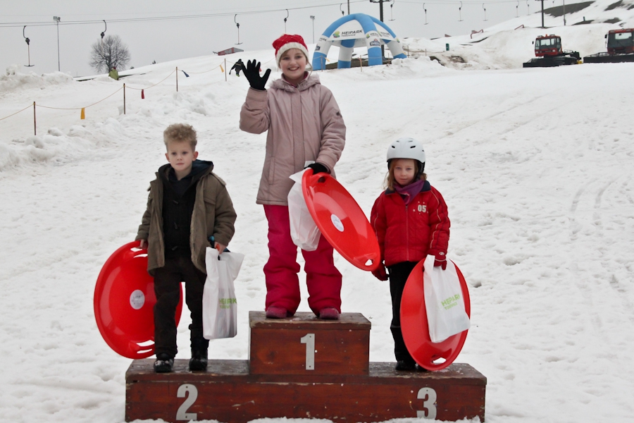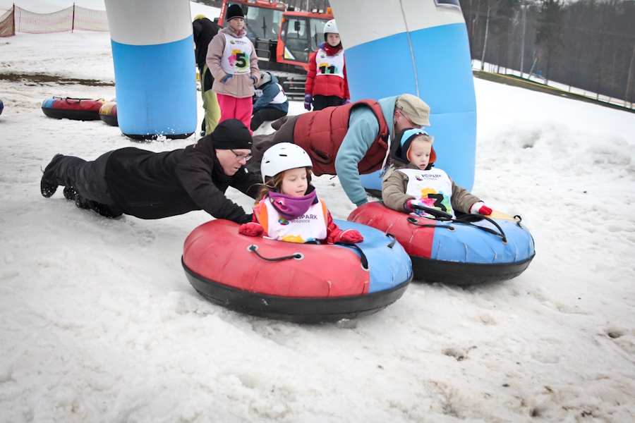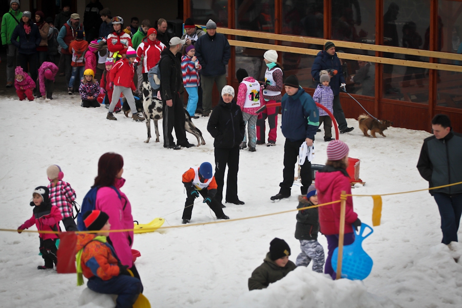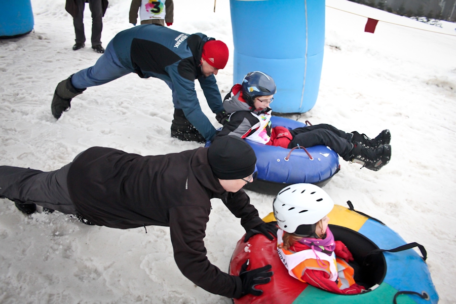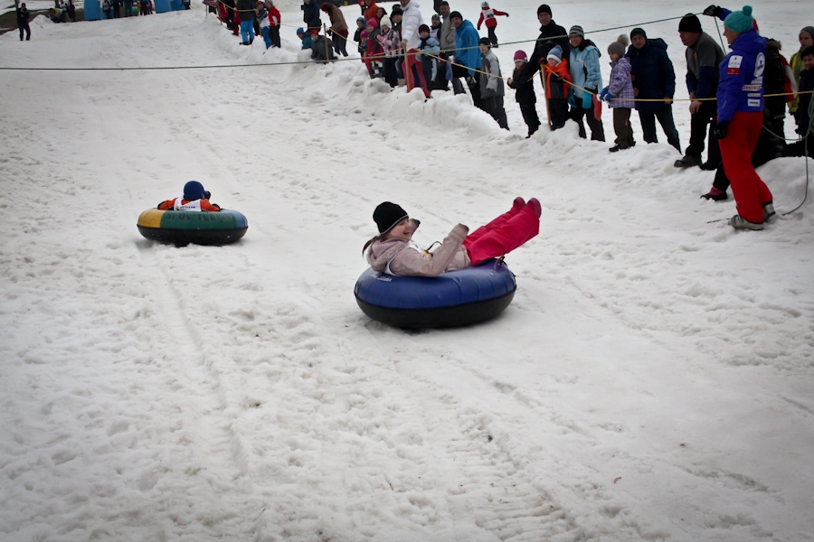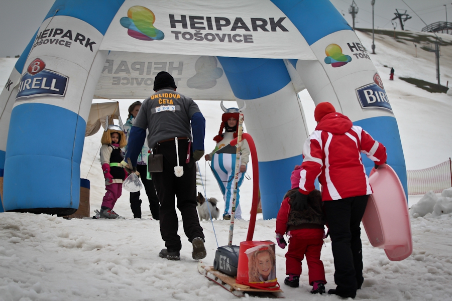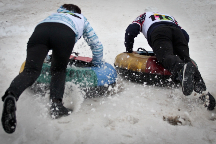 Závody ve sjezdu na čemkoliv z kopce a závody na tubingových důších jsou každoročně symbolem končící zimní sezóny...